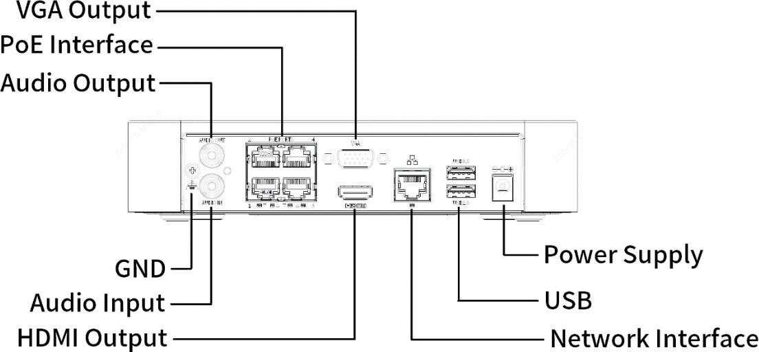 NVR rekordér s PoE výstupy z řady PRIME pro 4 kamery lze instalovat 1 HDD s kapacitou 6 TB/disk a možností záznamu s maximálním rozlišením 8 megapixelů. Rekordér je vybaven 4x 10/100 Mbps LAN porty s PoE (802.3af/at), PoE budgetem 50 W, jedním ethernetem 10/100 Mbps pro připojení do sítě, 4K HDMI, VGA, dvěmi USB porty (1x USB 3.0, 1x USB 2.0) a audio vstupem/výstupem. Vlastrní spotřeba zařízení je menší než 10 W (bez připojených HDD) a napájení je řešeno externím 48V DC adaptérem.