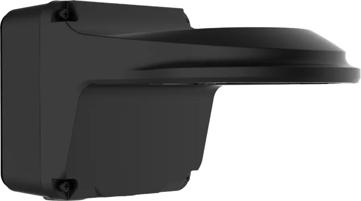 Černý držák s montážní krabicí pro ukrytí kabelů, určený pro montáž turret kamer Uniview na zeď.