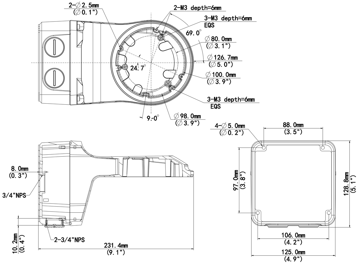 UNV TR-JB07/WM03-G-IN-BLACK, Wall mount with mounting box for turret camera, black