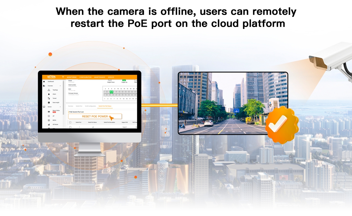 Wi-Tek WI-PCES210G is a reliable Easy Smart Cloud PoE Switch with a switching capacity of 5.6 Gbps, (8) PoE ports and (2) Gbit uplink ports. The downlink ports support PoE with a 100W budget. The switch is ideal for CCTV installations thanks to PoE, automatic detection of ONVIF devices for automatic camera detection, automatic IP camera reboot in case of connection failure and the option to extend the transmission distance of PoE ports up to 250m. The switch consumes 2.4W (without PoE load)