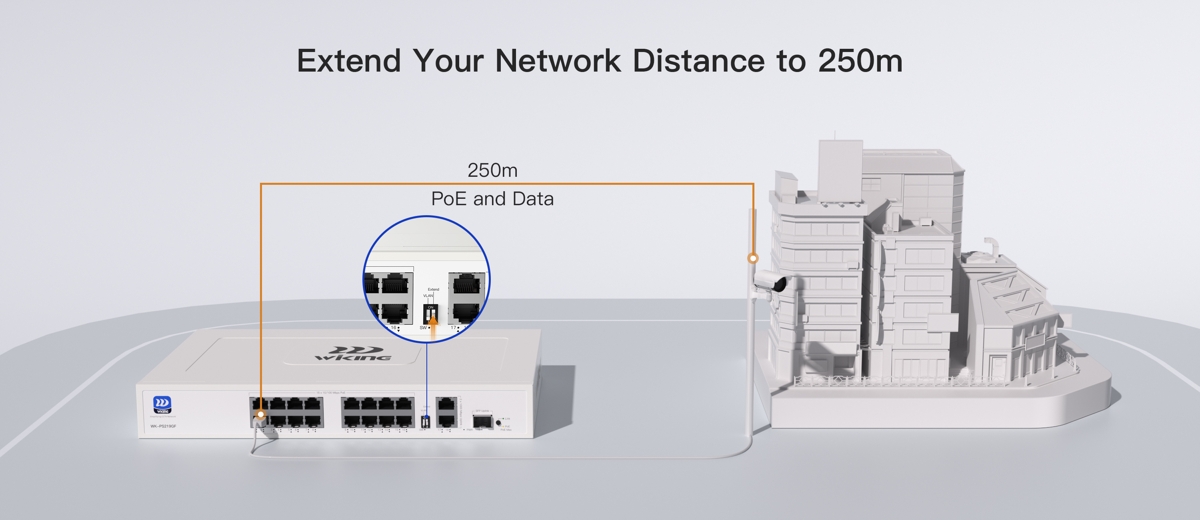 Long range PoE - up to 250m: